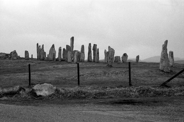 Look here, one of the tallest standing stones in Scotland as it happens - Clach an Trushal - over on the West Side. And I wus there the other day - pointing a camera [Zorki4/Jupiter12] at it. Didn't seem to mind either. Too much sun though. The film - Polypan didn't like that. Toots didn't like the house just there and the car either. Best bit I thought!